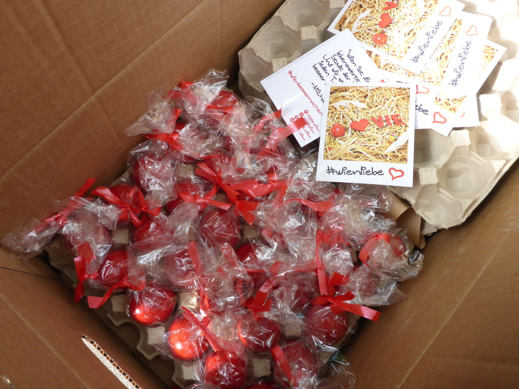 Mit derlei Sprüchen wurden heute an mehreren Orten im 3. Bezirk Ostereier an Passanten verteilt.
