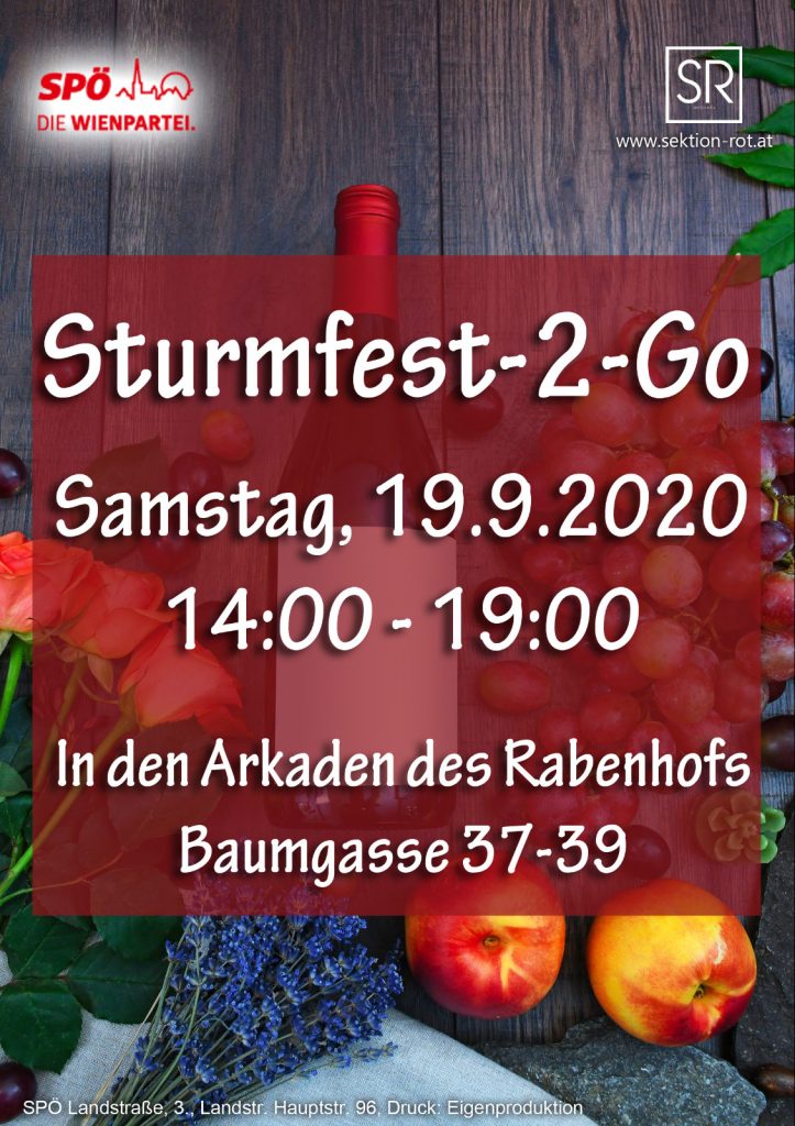 Du hast die Möglichkeit, bereits im Vorfeld roten und weißen Sturm zu bestellen und ihn zwischen 14:00-19:00 bei uns, in der Baumgasse 37-39, abzuholen.
